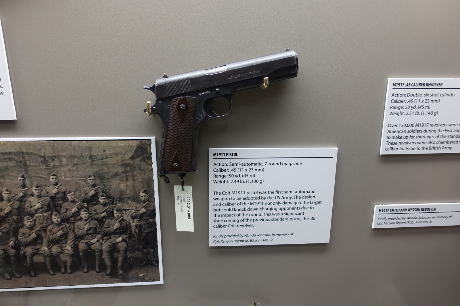 Perhaps a little known fact, the Army fielded an updated version of the M1911 known at the M15. It shared the same .45 ACP cartridge but has a short barrel and larger sights. It was issued to Officers and was therefore known as the M15 General Officers Pistol.