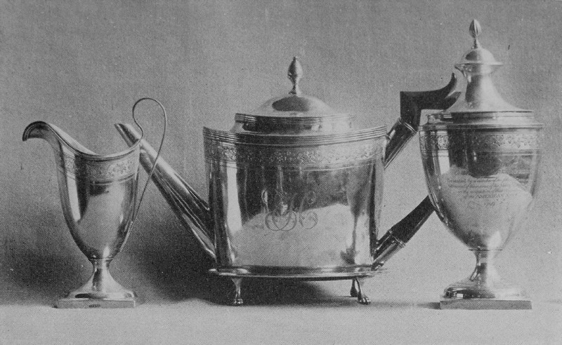 It’s a silver tea set that was made in 1799, and presented to Edmund Hart who was the man who constructed the ship Boston. The tea service can be seen at the Museum of Fine Art in Boston