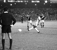 In the second half, a defender appeared to bring Pelé down in the penalty area. The referee pointed to the spot and the Santos left-back, Rildo, stepped up to take the kick, but the team captain, Carlos Alberto, decided that Pelé should take the spot kick as his team-mates retreated to the half-way line in order that he may compose himself.