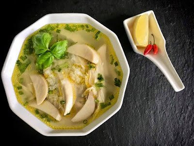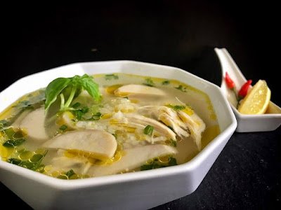 Ladle chicken soup into a serving bowl. Garnish with green onion, and culantro leaves. Serve with lime or lemon wedges on a side if you don’t use preserved lemon in the dish. I like to add a few slices of fresh red chili pepper to my bowl as hot, fragrant and sour is how I like.