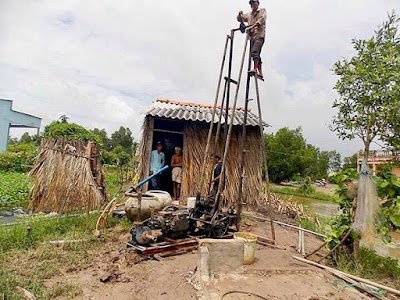 Rinse the chicken well under cold running water. In a large pot, about 8 quarts, add chicken, roasted rice, mushroom, garlic, lemongrass, kaffir lime leaves, and enough water to cover it at least by 2 inches and bring to a boil. Reduce heat to medium low to maintain a simmer and cook for about 45 minutes to extract as much flavor as possible from the bone and meat so all the goodness goes into the broth, and the rice grains expand and become soft. Add sugar, salt, and fish sauce. Use a fork to break the chicken apart into small pieces.
