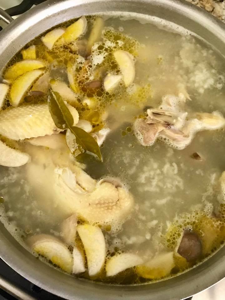 At this point, smash a preserved lemon one at a time and add to the chicken pot. Give it a taste and adjust the seasonings to your liking. Add more preserved lemon if you want a bit more punch. Eliminate preserved lemon if you prefer. The flavor won’t be the same but broth is still hearty and delicious. You can substitute fresh lime juice and serving it on the side. Cook the chicken soup for another 10 minutes.