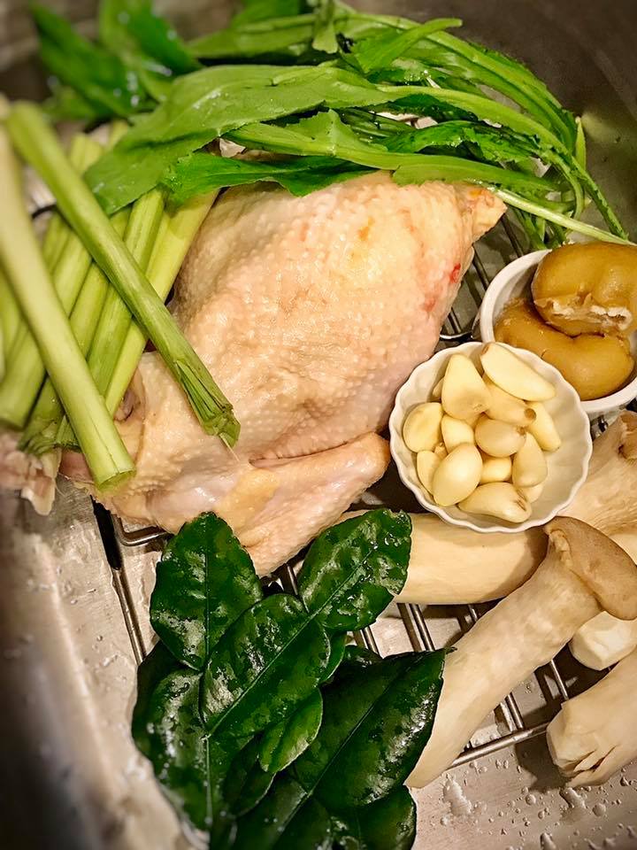 For this soup, I like to use free range chicken from an Asian supermarket. It is smaller and less meaty than chicken from American supermarket but when cooked, it produces an intense chicken stock with a beautiful yellow hue.  The chicken skin becomes yellow and looks amazing.