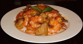 1/2 lb medium sized Shrimp with shell on and head on if preferred. Make sure to trim the sharp part of the heads and tails.