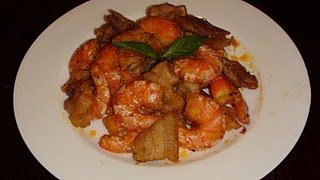 Add shrimps and turn the heat to high. This will cause the pork to curl and give the shrimps the gorgeous orange color. It also keep the shrimps juicy. Stir for a few minutes until meat and shimps are slightly cooked.