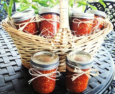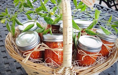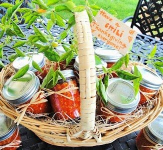 The beautiful vivid orange and red colors of the chili peppers remind me of this season’s colors. So my husband and I made a basket of jarred chili garlic sauce to give thanks to our family members and friends during this holiday season. My husband added a nice touch to the jars with those nice straw bows which I tried but can never make it look nice enough.