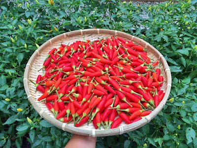 We usually start harvesting our chili peppers in October and throughout the November month. In the past we used to freeze them and cook them whole in dishes such as cá kho (fish clay pot), thịt kho (caramelized braised pork), or when we make fish soups to reduce the fishy smell and spice up the flavor. We also stored some in the fridge to enjoy with each meal. We dried them and make chili powder. We packaged the remainder in ziploc bags and shared them with our families, friends and our neighbors.