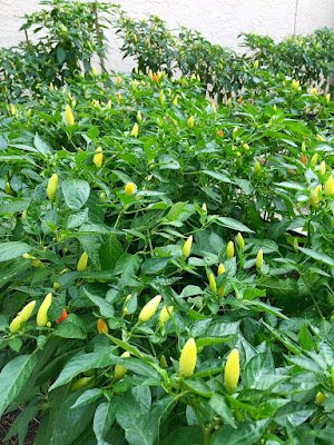 When fall arrives, our garden looks so luscious with many variety of tomatoes, bell peppers, chayote (xu), bitter melons, eggplants, and much more…But what stand out the most are the beautiful chili pepper plants.