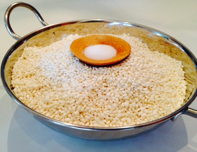 Rinse sweet rice a few times until water is clear. Drain. Pour the rice, water and salt in a rice cooker and cook. Make sure to stir it a couple times to ensure the sweet rice is cooked evenly. Remove rice from the cooker and let it cool down.
