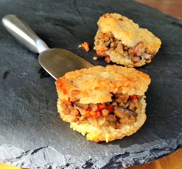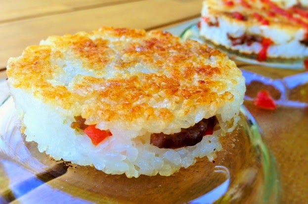 My older daughter longs to have me deliver homemade food to school for her every day at lunch. I like to make different kinds of food that is easy to pack for her and also for my little one to munch on after school. This xôi chiên is one of their favorite savory snacks. It’s crunchy on the outside, chewy on the inside, and the filling is packed with tantalizing flavors of ground pork, carrot, jimaca, onion, and mushroom. While it’s still warm and crunchy, one won’t do your tummy justice.